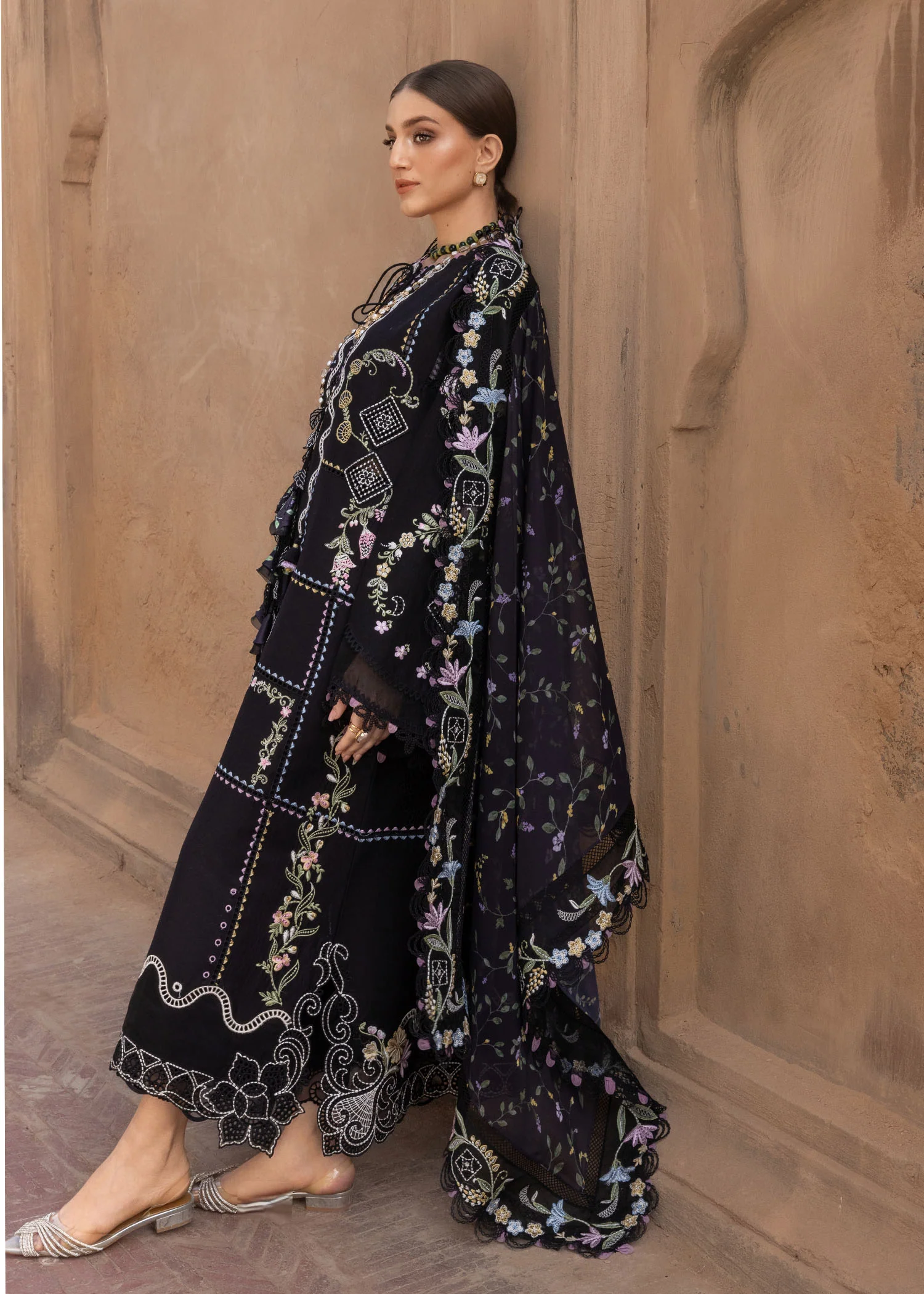 - Embroidered And Cutworked Left & Right Back Side Panels.